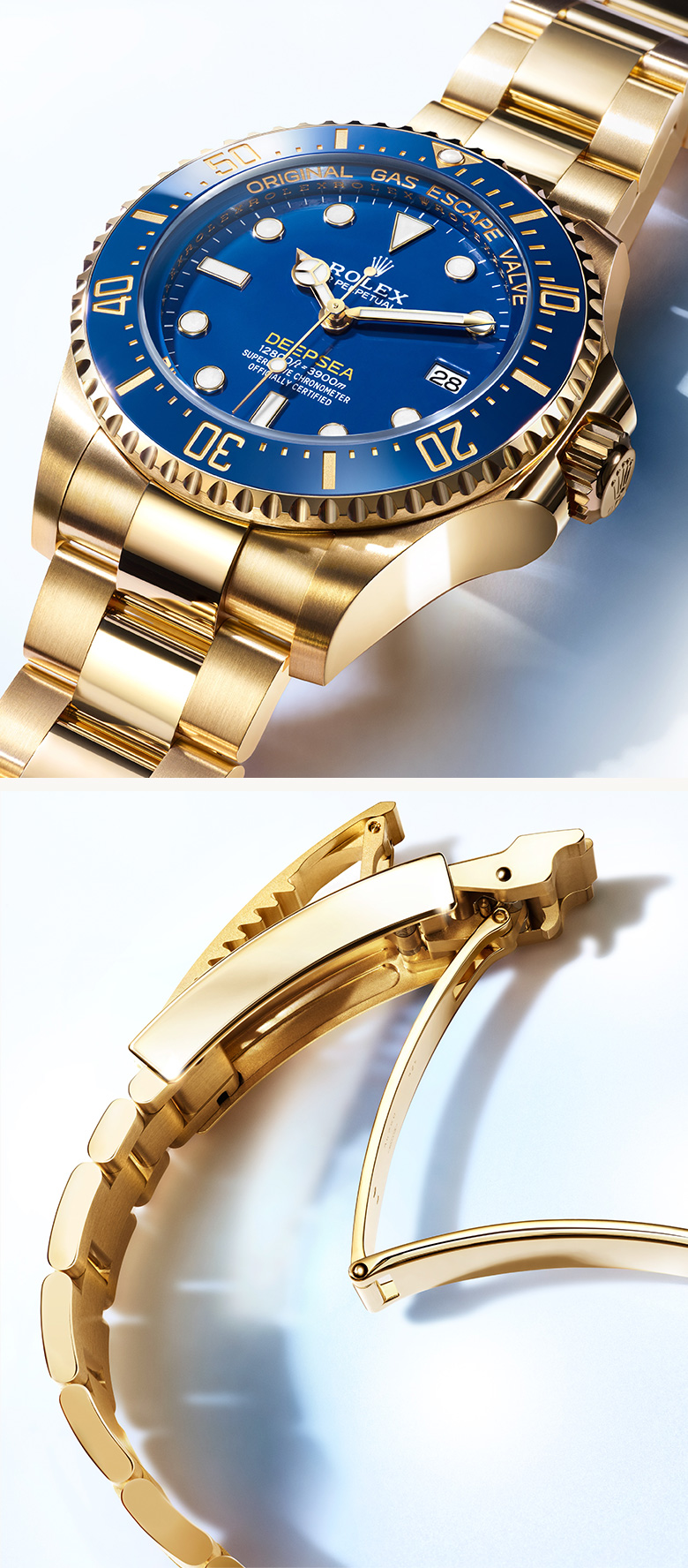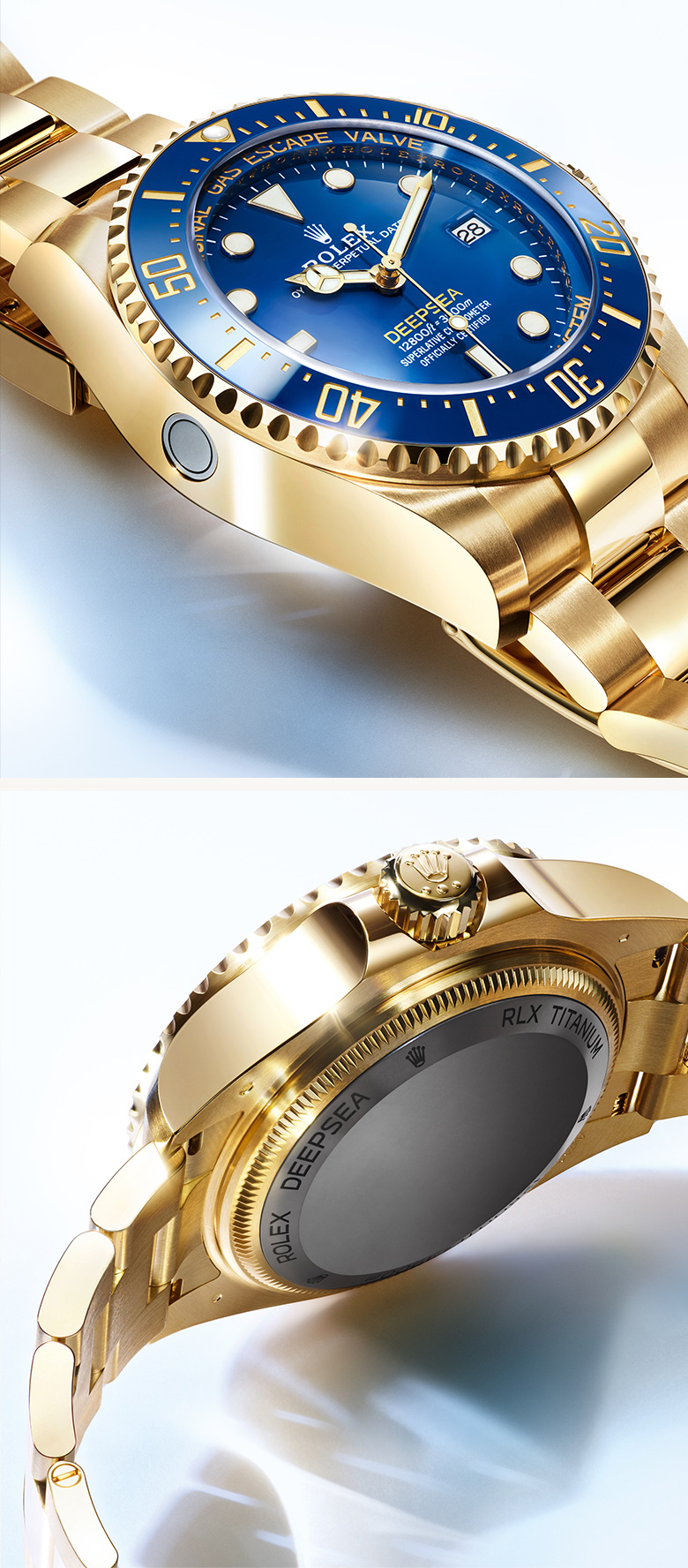 O Rolex Deepsea demonstra perfeitamente a capacidade de inovação da Rolex. Com impermeabilidade garantida até 3.900 metros, este relógio de mergulho para grandes profundidades inaugurou em 2008, quando foi lançado, o sistema Ringlock – uma inédita arquitetura de caixa que lhe permite resistir à pressão predominante nessa profundidade extrema.